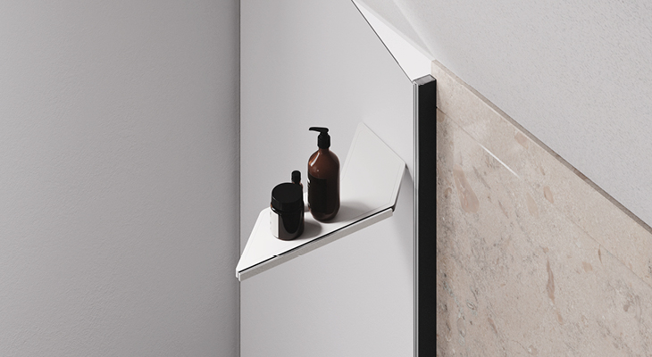 Oltre alla funzione strutturale, la mensola introduce uno spazio utile per riporre oggetti quotidiani come shampoo, saponi o accessori. In questo modo, l’elemento tecnico si trasforma anche in una componente pratica, migliorando anche l’esperienza d’uso. Si distingue quindi per un equilibrio raro: non è solo un accessorio, ma una soluzione che ripensa la doccia come uno spazio completamente nuovo.